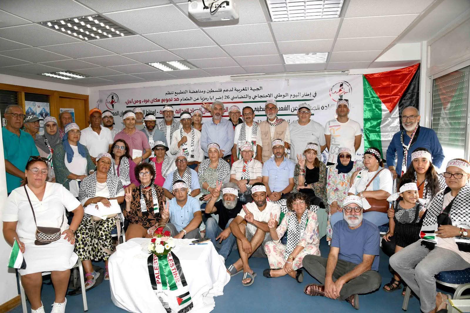نفذت الجبهة المغربية لدعم فلسطين ومناهضة التطبيع، اليوم السبت، إضرابا عن الطعام بالمقر المركزي للجمعية المغربية لحقوق الإنسان بالرباط، ضمن فعاليات يومها الوطني الاحتجاجي السادس والعشرين.
